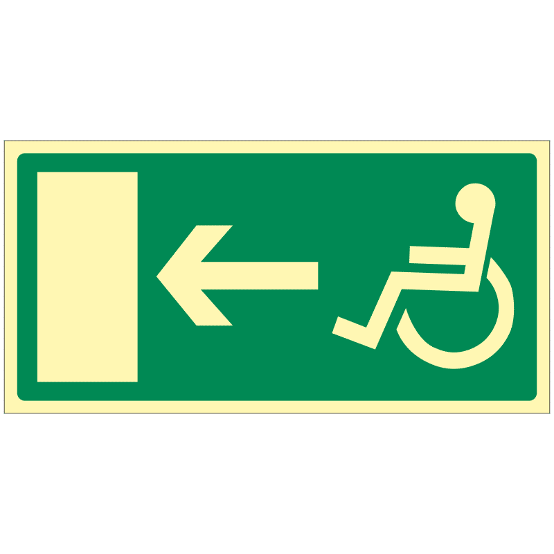 Fotoluminiscenční symbol bezbariérové únikové cesty do leva má význam z hlediska bezpečnosti a přístupnosti pro všechny osoby v budově nebo prostoru. Jeho význam zahrnuje následující body:
