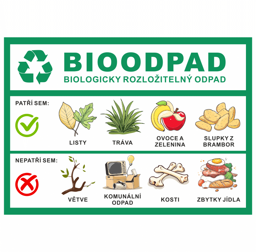 - Návod ke třídění: Tabulka může obsahovat krátký návod na správné třídění bio odpadu, což představuje proces třídění.