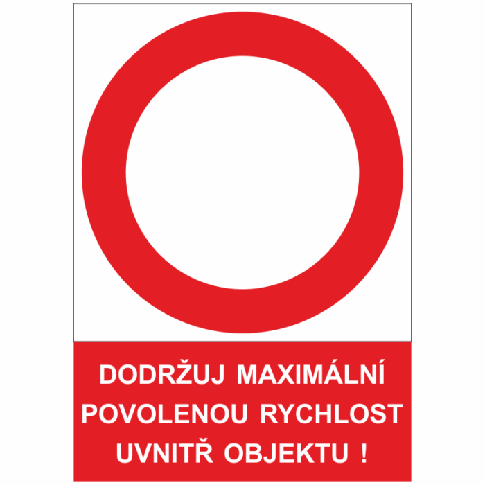 Značka “DODRŽUJTE MAXIMÁLNÍ POVOLENOU RYCHLOST UVNITŘ OBJEKTU” je značka, která obvykle označuje maximální povolenou rychlost pro vozidla uvnitř určitého objektu, jako je parkoviště, areál společnosti nebo jiný uzavřený prostor.