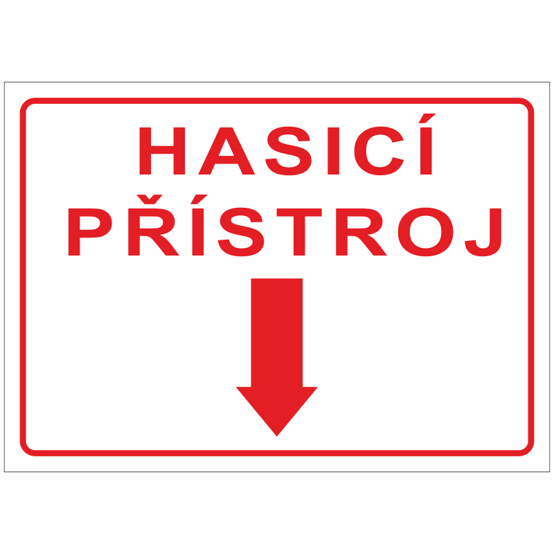 Hasicí přístroj (text se směrovou šipkou dolů)