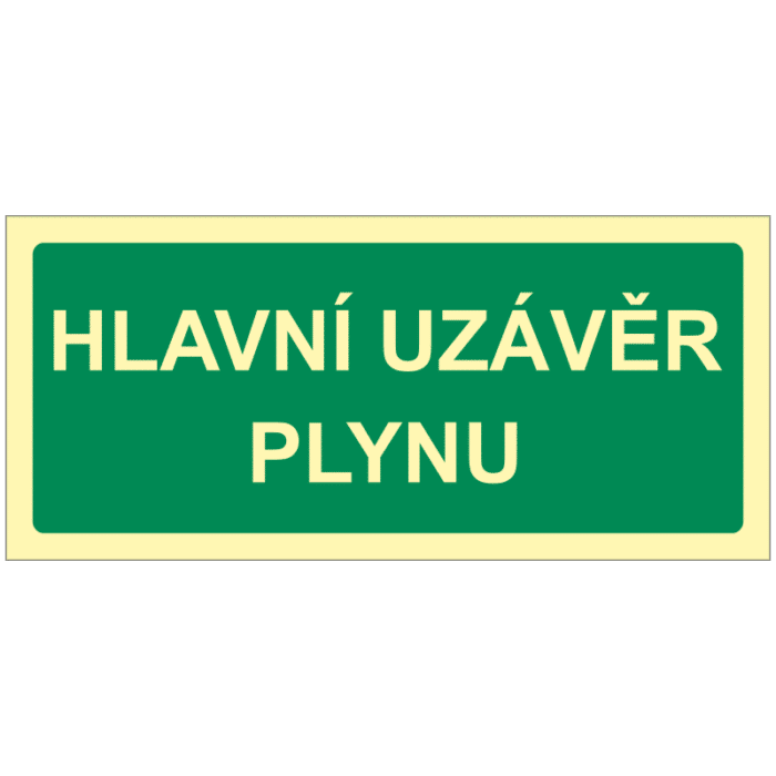 Fotoluminiscenční značka s textem “HLAVNÍ UZÁVĚR PLYNU” je bezpečnostní značka, která označuje místo, kde se nachází hlavní uzávěr plynu v budově nebo na určitém místě. Tato značka má za úkol informovat osoby o umístění hlavního uzávěru plynu, který lze uzavřít v případě havárie, úniku plynu nebo jiných nebezpečných situací.