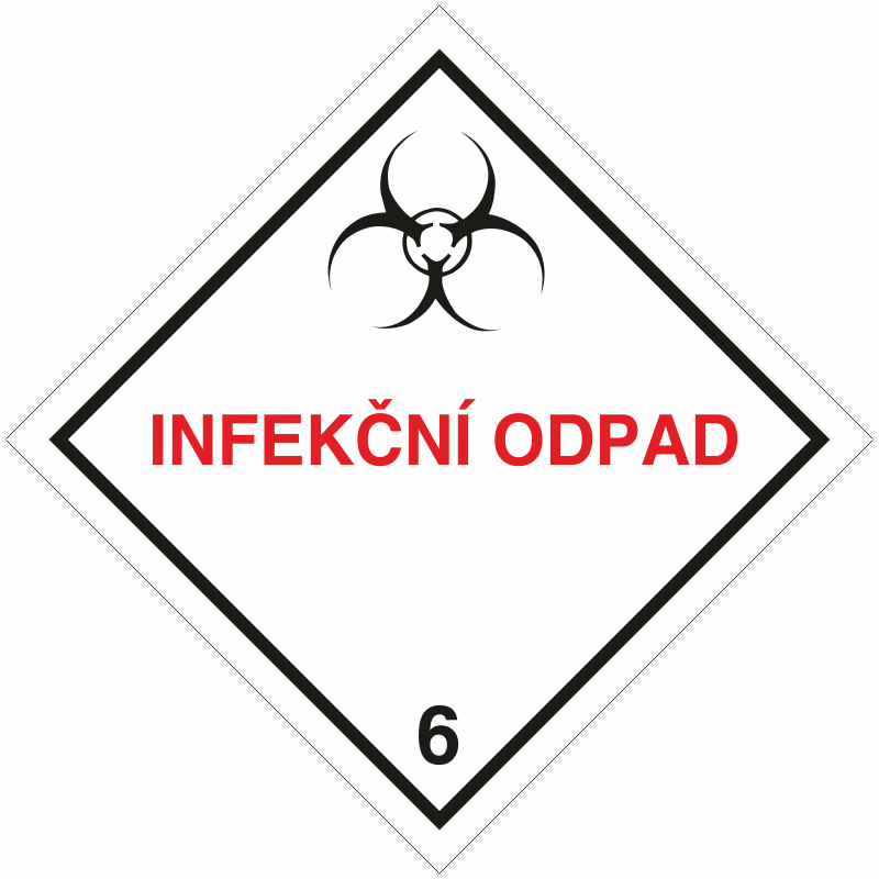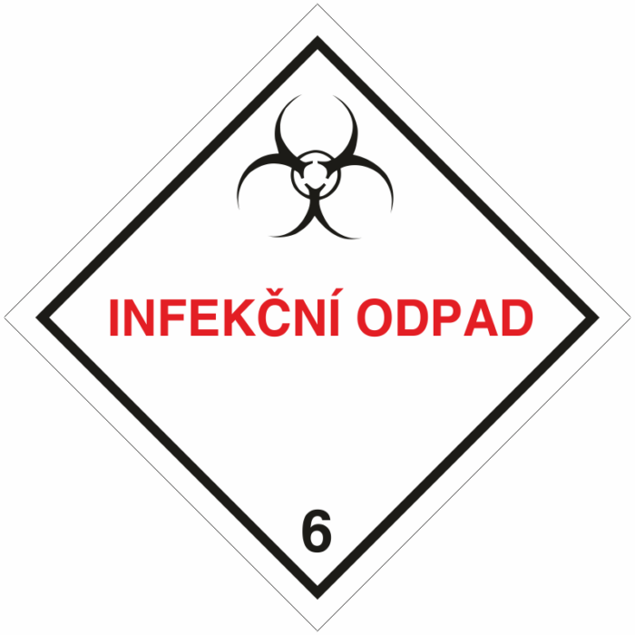 Infekční odpad (biologické riziko) č.6.2 C (bílý podklad, červený český text)