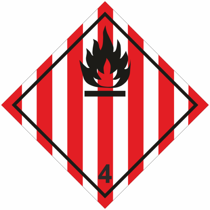 Označení “Nebezpečí požáru (hořlavé tuhé látky) č. 4.1” je součástí klasifikace nebezpečných materiálů podle předpisů ADR (Evropská dohoda o mezinárodním přepravním nebezpečných věcí silniční dopravou) a označuje tuhé látky, které jsou hořlavé a mohou při požáru vytvořit nebezpečné podmínky.