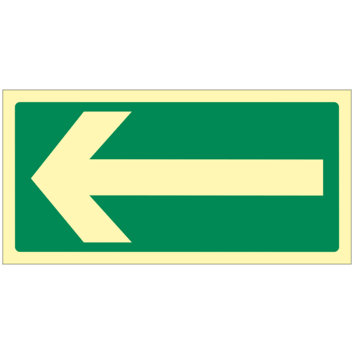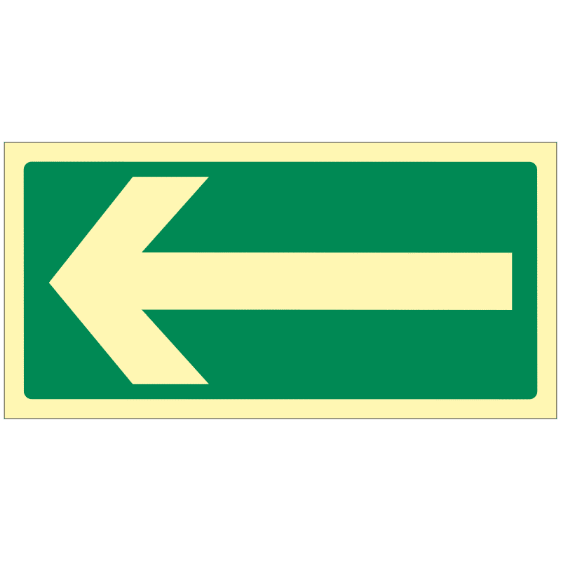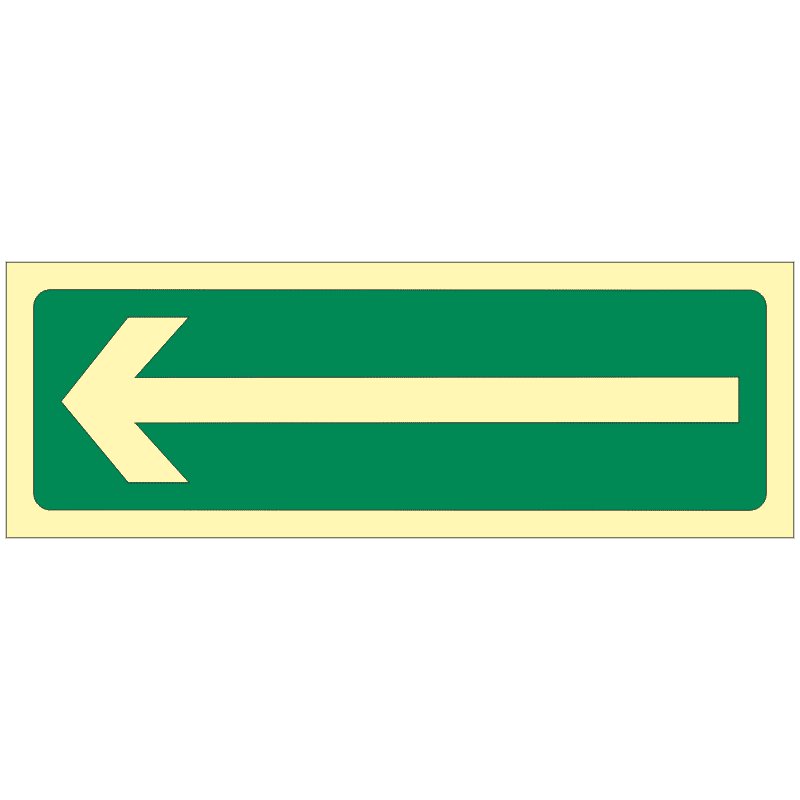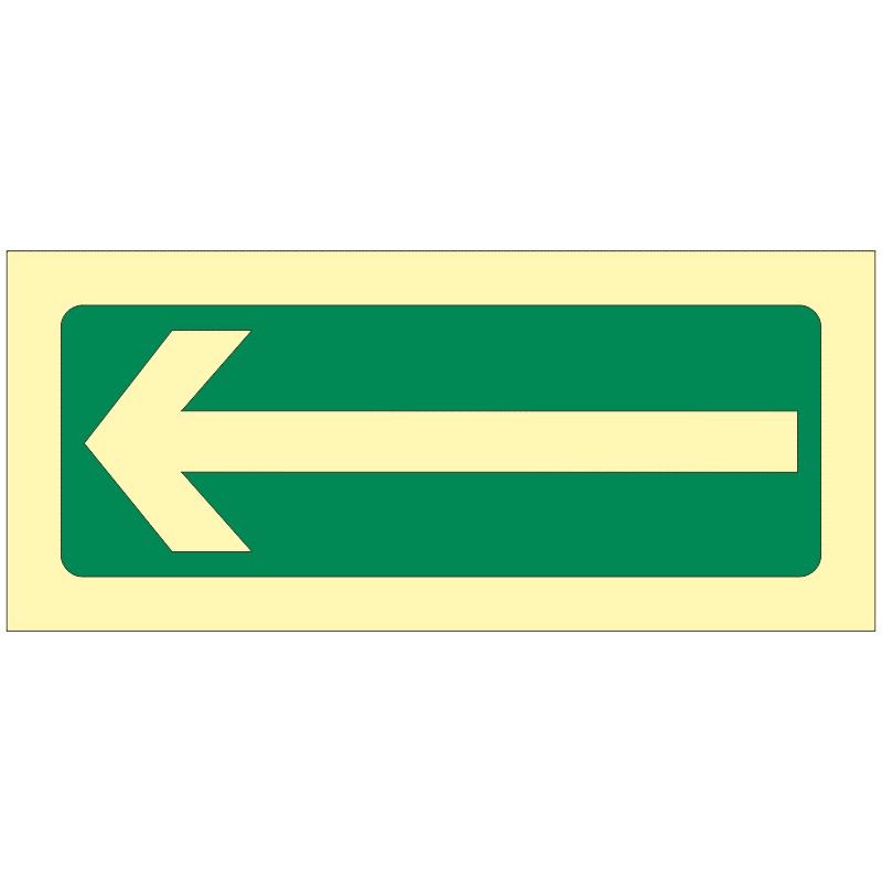 Fotoluminiscenční značka s symbolem zelené šipky obvykle symbolizuje směr, kterým by měla osoba postupovat nebo kterým by měla jít. Fotoluminiscenční vlastnosti znamenají, že tato značka svítí ve tmě po osvětlení a může být užitečná v situacích s omezenou viditelností.