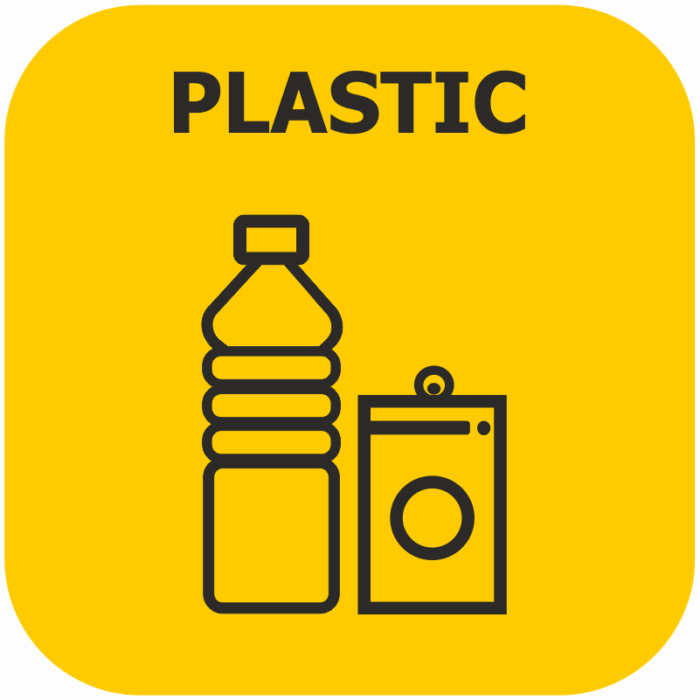 Značka na separovaný odpad “PLAST” je používána k označení kontejnerů nebo nádob, kam je možné vkládat plastový odpad na recyklaci.