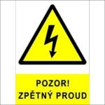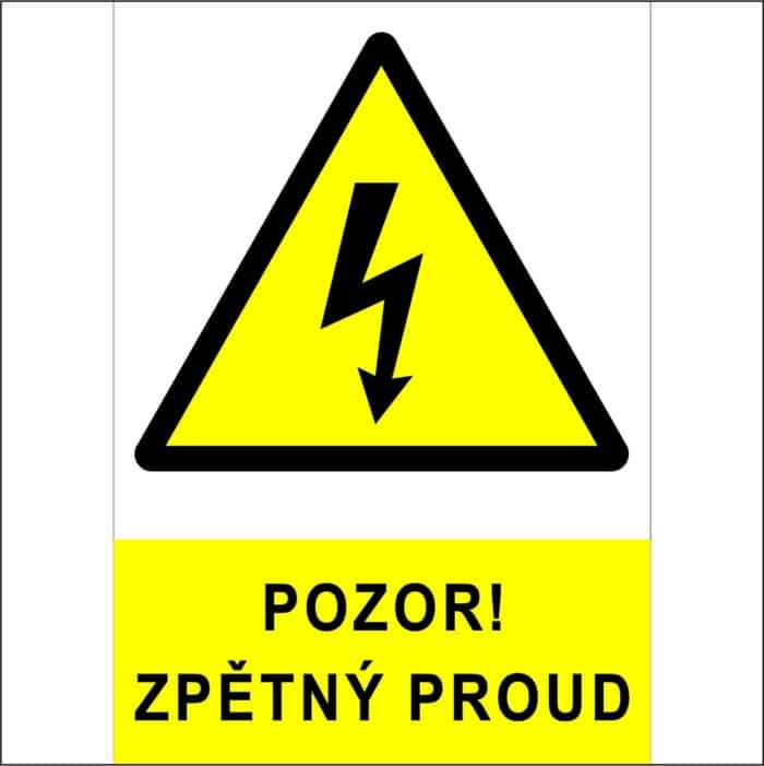 Bezpečnostní značka “Pozor! Zpětný proud” slouží k varování před možností zpětného elektrického proudu nebo zpětného napětí v určitém elektrickém obvodu nebo zařízení