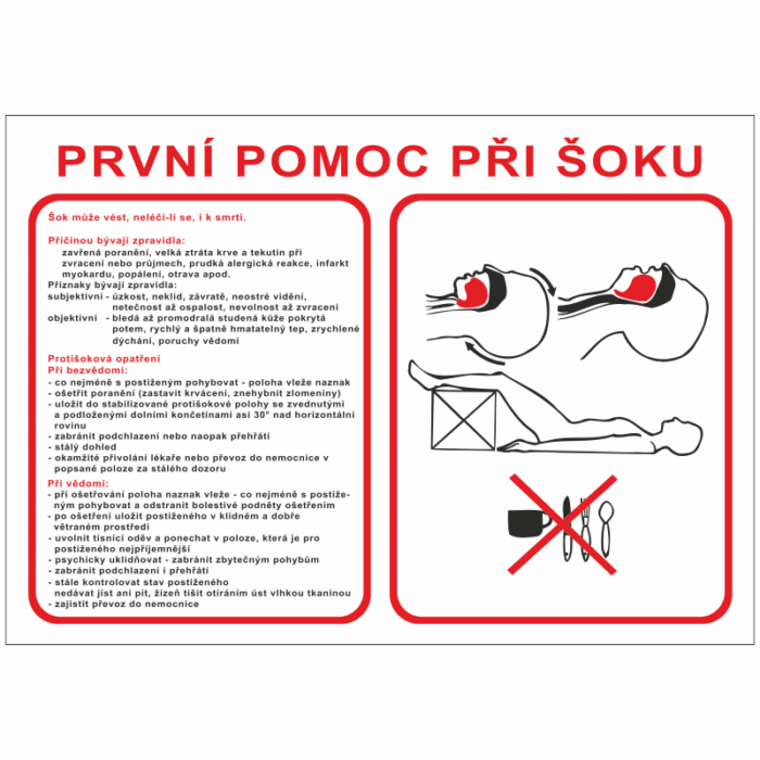 Značka “První pomoc při šoku” označuje místo, kde jsou k dispozici prostředky a zdroje pro poskytnutí první pomoci osobám, které utrpěly šok