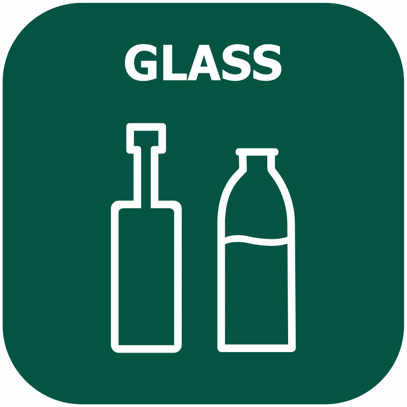 - Označení pro sklo: Tabulka obsahuje jasné označení “Sklo,” což umožňuje snadno identifikovat místa, kam má být umístěn skleněný odpad.