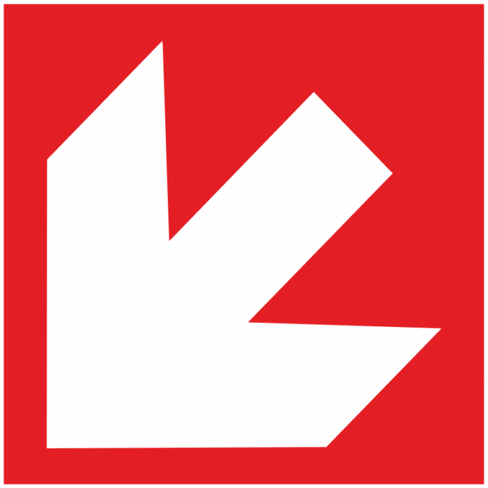 Symbol “Směrovka k zařízení požární ochrany” slouží k označení směru, kterým se nachází zařízení požární ochrany, například hasicí přístroje, hasicí hydranty nebo jiná zařízení určená k hašení požárů. Jeho význam zahrnuje: