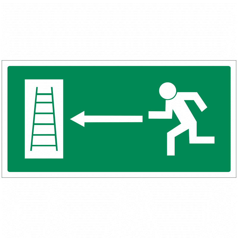 - Navigace k bezpečnému úniku: Symbol informuje osoby, že na levé straně prostoru nebo budovy se nachází únikový žebřík, který může být použit k opuštění místa v případě mimořádné události, jako je požár nebo jiná situace, která vyžaduje rychlý únik.