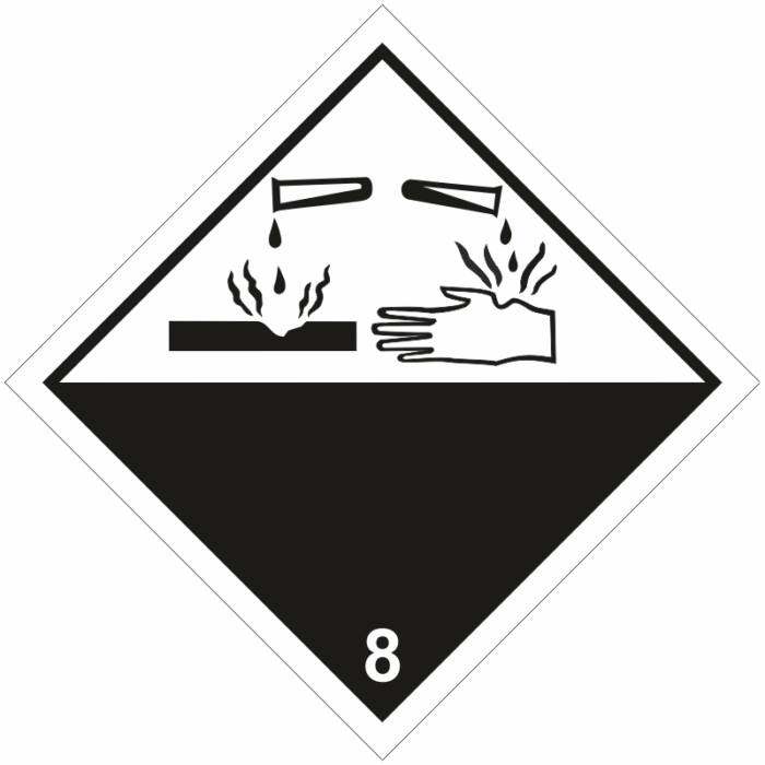 Žíravá látka č.8 (bílý podklad, černý tisk)