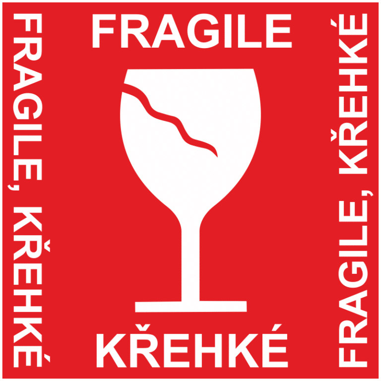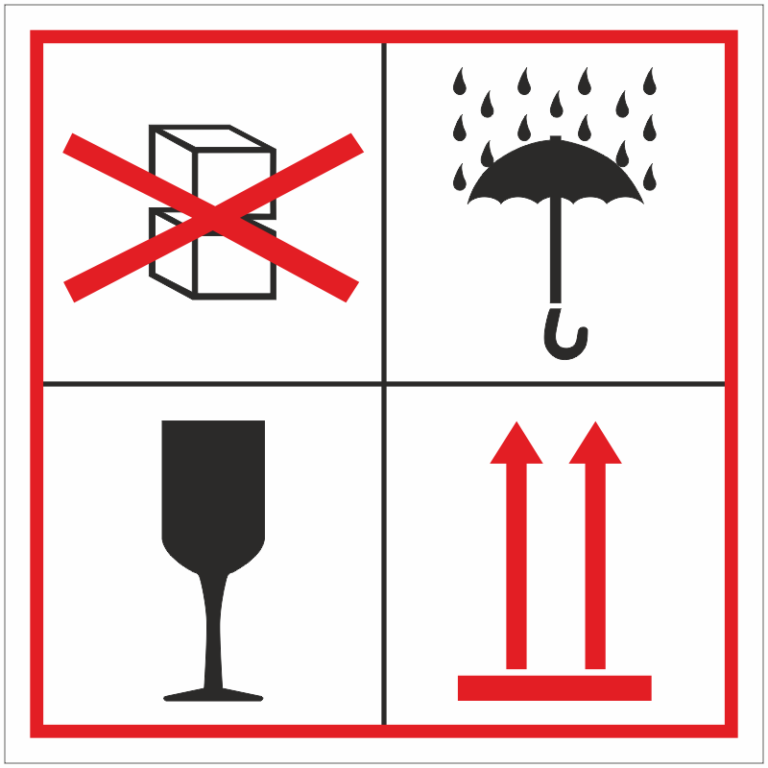 Sdružená značka č.10,11,12(chránit před vlhkem, touto stranou nahoru, křehké zboží-opatrně zacházet)