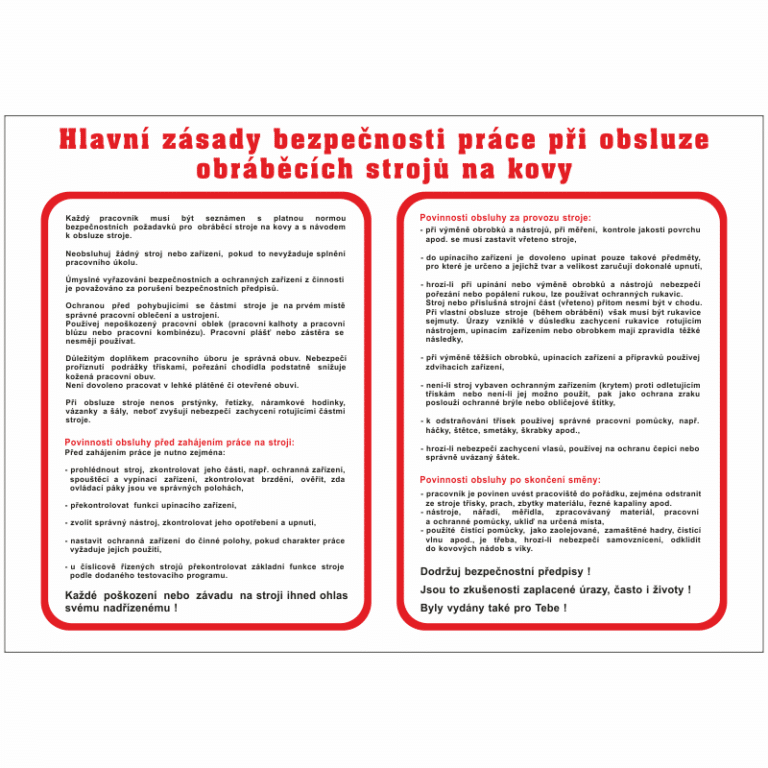 Hlavní zásady bezpečnosti práce při obsluze obráběcích strojů na kovy